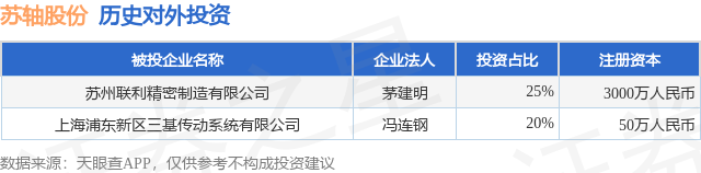 本站消息,根据天眼查APP显示,苏轴股份(920418.BJ)新增一起对外投资事件无锡恒鑫配资,被投资公司为苏州联利精密制造有限公司,法定代表人茅建明,投资占比为25%。该公司从事金属制品业,注册资本为3000万人民币。目前,苏轴股份共存在对外投资2项,详见下表: